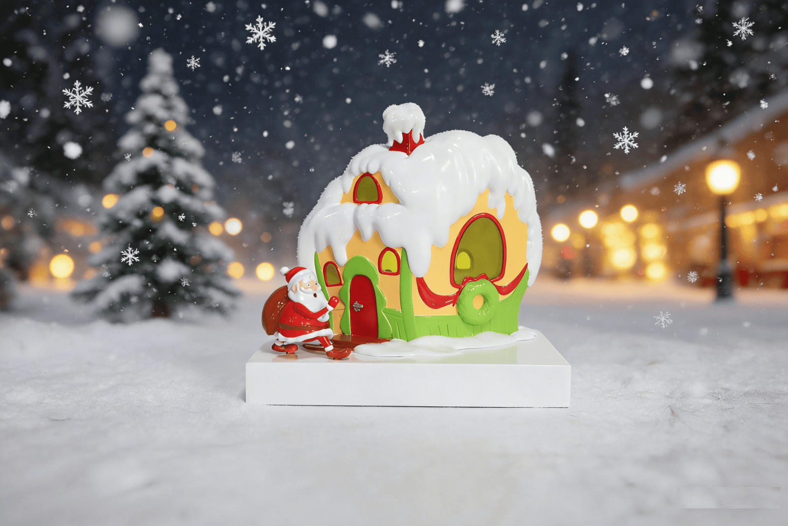 - Material: Made of durable ABS plastic, paired with an injection-molded PVC Santa figurine.